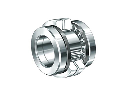 滾針/推力圓柱滾子軸承包括一個(gè)加厚的外圈、滾針保持器組件、滾針內(nèi)圈、兩個(gè)推力圓柱滾子保持器組件和兩個(gè)推理軸圈,相當(dāng)于一套滾針軸承和兩套推力圓柱滾子軸承的組合軸承,兩個(gè)推力圓柱滾子軸承中心和滾針軸承中心重合。