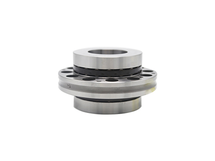 滾針/推力圓柱滾子軸承包括一個(gè)加厚的外圈、滾針保持器組件、滾針內(nèi)圈、兩個(gè)推力圓柱滾子保持器組件和兩個(gè)推理軸圈,相當(dāng)于一套滾針軸承和兩套推力圓柱滾子軸承的組合軸承,兩個(gè)推力圓柱滾子軸承中心和滾針軸承中心重合。