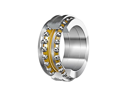 雙向推力用接觸球軸承由兩個軸圈、一個座圈、一個隔套和兩列滾動體及保持架組件組成。修磨隔套的厚度即可調整軸承的間隙和預緊。軸承的接觸角為60°。該軸承的公稱外徑和與其配套的雙列圓柱滾子軸承的外徑相同,但外圈與箱體孔之間有間隙,因而,雙向推力角接球軸承不承受徑向載荷,與雙列圓柱滾子軸承配套使用以承受雙向軸向載荷。