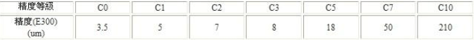 精度表示方法為:不論你的滾珠絲桿有多長(zhǎng),任取一段300mm,誤差都在等級(jí)代表的精度之內(nèi),各等級(jí)代表的精度如下: